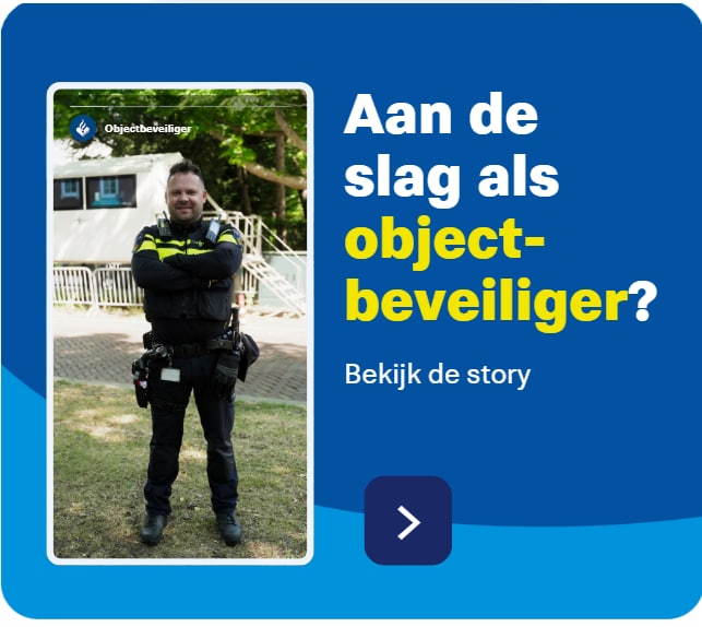 Objectbeveiliger is een mooi beginpunt voor een langere loopbaan bij de politie. Je kunt doorgroeien naar functies als beveiligingsmedewerker, generalist beveiliging, senior beveiliging, operationeel expert beveiliging of naar een andere rol binnen de politie. Zo blijf je jezelf ontwikkelen.